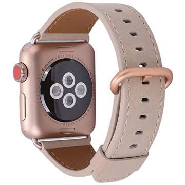 Show more Introducing the perfect blend of style and functionality, this Apple Watch band is designed for the discerning wearer who values both aesthetics and comfort. Handcrafted from genuine leather, this strap offers a luxurious feel on the wrist, ensuring that you not only look good but also enjoy unrivaled comfort throughout the day. Its breathable material keeps your skin cool, making it the ideal band for any occasion, especially during warm weather.