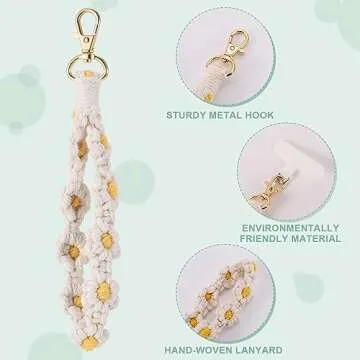 Show moreIntroducing the Jspupifip 2 PCS Boho Macrame Phone Wrist Strap – the perfect blend of style, durability, and functionality! This set includes two gorgeous straps, designed not just to secure your smartphone but to elevate your accessories game. The aesthetic floral design in white and green adds a chic touch to your outfit, while the high-quality cotton construction guarantees both a soft feeling against the skin and exceptional resilience through daily wear. With a length of 19.5 cm (7.68 inches), this strap offers ample coverage for comfortable wear on your wrist or attachment to your purse or backpack.