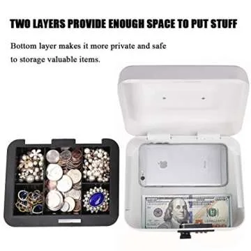Jssmst Medium Cash Box with Combination Lock - Durable Metal Cash Box with Money Tray White,7.87 x 6.3 x 3.35 inches, SM-CB07005M