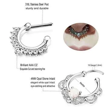 Discover the elegance of everyday adornment with the Jstyle 2 Pcs a Set Brass Septum Ring Nose Hoop Piercing Clicker Ring. This unique set includes two stunning hoop rings, featuring one beautifully crafted created-opal nose hoop and one dazzling CZ hoop. These rings are designed to allow you to express your individuality each day, effortlessly transforming your look. Whether you’re looking for a new staple or a standout piece, this set offers versatility that suits any occasion.