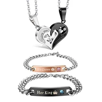 Jstyle 4Pcs Couple Necklace Bracelets Matching Set - Heart Pendant - Him & Her Gifts