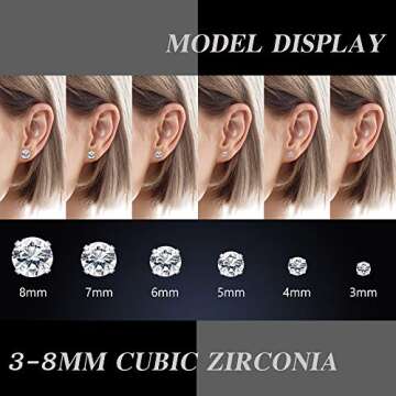 Jstyle 6Pairs 18G Stainless Steel Mens Womens Stud Earrings Cartilage Ear Piercings Helix Tragus Barbell CZ 3-8mm S