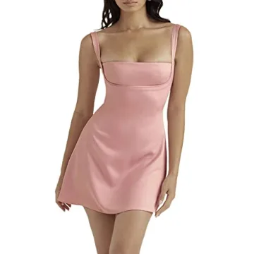 Juakoso Women Low Cut Spaghetti Strap Mini Dress - Chic Elegance in B-Pink