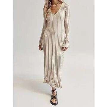 Show more Introducing the ultimate fashion statement for the modern woman: our Flare Long Sleeve Knit Maxi Dress. This stunning dress is expertly crafted from a high-quality cotton blend material, ensuring a soft, skin-friendly, and stretchy fit that is incredibly comfortable to wear. Designed with elegance and style in mind, this maxi dress is perfect for various occasions, making it a versatile addition to your wardrobe.