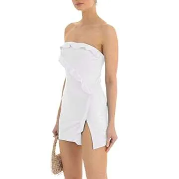 Show more Indulge in irresistible style with the women's sexy strapless tube mini dress, crafted from premium polyester material. This exquisite fabric is not only skin-friendly but also soft, lightweight, stretchy, and breathable, ensuring you remain comfortable and confident all day long. The design features a bodycon silhouette that hugs your curves in all the right places, making it the perfect choice for those looking to exude charm and appeal.