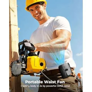 Show moreBeat the Heat in Style! Introducing the JUANANIUG Portable Waist Fan, your ultimate companion for staying cool without sacrificing your hands! This innovative and multifunctional fan combines practicality with cutting-edge technology, designed specifically for those tough outdoor conditions whether you are battling the summer sun at a construction site, gardening, or simply on the move. With its unique hands-free & multi-use design, you can clip this lightweight fan to your belt, waistband, or wear it around your neck using the included lanyard. Its compact and portable size is perfect for outdoor adventures, so you can focus on the task at hand while enjoying a refreshing breeze!