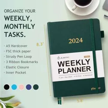 While other planners may offer standard layouts, the JUBTIC 2024 Planner stands out with its robust design and functionality. Competing planners often lack the eco-friendly commitment showcased here with FSC-certified paper and thoughtful bonus features such as the habit tracker and stylish stickers. The planner's compact size combined with its spacious layouts sets it apart, ensuring you can carry your planning tool comfortably without compromising on space or utility.