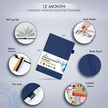 JUBTIC Planner for 2025, Undated Planner Weekly and Monthly Appointment Book for Time Management Productivity Planners with Stickers (Dark Blue)