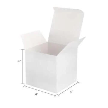 Show moreIntroducing the Jucoan 100 Pack White Paper Gift Boxes, your ultimate solution for all your gift-giving needs! Each box measures 4 x 4 x 4 inches, providing the perfect size for packing a variety of small treasures from candies to candles, making them incredibly versatile. Crafted from high-quality Kraft paper, these boxes are not only sturdy and durable but will ensure that your gifts are presented beautifully. Their vibrant white color offers a clean and elegant look, while a smooth satin finish enhances their appeal, giving your gifts a stylish touch. Whether you're planning a wedding, a birthday party, or a seasonal celebration, these boxes will meet your gifting expectations with grace and charm.