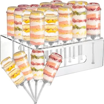 Show more Get ready to elevate your dessert game with the Jucoan 24 Pack Cake Push Up Pop Containers! This exquisite acrylic cake push pop display stand not only features 24 reusable push pop containers but also comes equipped with a sturdy holder designed to make every event a standout experience. Crafted meticulously from 4 mm thick quality acrylic, this display promises clarity and durability, making it a stunning addition to any celebration. Measuring 10 x 8 x 3.5 inches, it includes 20 carefully designed holes that are perfect for presenting a multitude of treats, including cake pops, lollipops, and a variety of other delicious delights. And remember, to keep that sleek look intact, peel off the protective film before use!