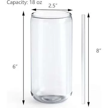 Jucoan 4 Pack 18 oz Can Shaped Beer Glass, Premium Handmade Clear Drinking Glass Cups with 4 Reusable Glass Straws for Water, Wine, Beer, Cocktails and Mixed Drinks