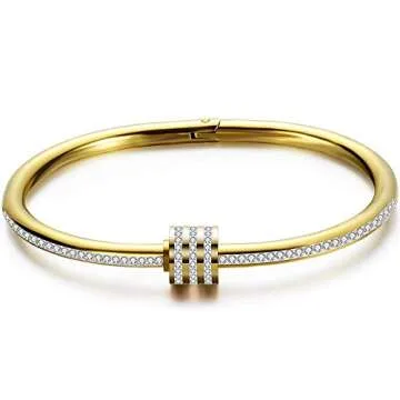 This bangle is adorned with sparkling cubic zirconia, offering a luxurious appearance without the hefty price tag. Reviews praise its ability to look expensive, with one user stating, "It appears to be thousands of times higher in price from the $10 I spent!" Not only does it offer a high-end look, but it is also designed with practical usability in mind, featuring an easy-to-use barrel clasp that securely fastens your bracelet with a simple twist.