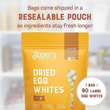 Show more Transform your culinary creations with Judee’s Dried Egg White Protein Powder, your go-to baking essential that brings the convenience of powdered eggs to your kitchen. Perfect for whipping up a fluffy meringue or adding a protein boost to your smoothies, this 16 oz pouch offers a simple, high-quality solution when you find yourself short on fresh eggs. With just one ingredient and made in the USA, you can trust the purity of this product while enjoying its versatility in a variety of recipes.