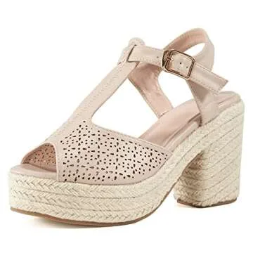 Show moreStep into summer in style and comfort with the Judxsious Women's Espadrille Platform Wedges. These elegant yet practical sandals are designed with a blend of fashion and function, perfect for the modern woman who values both aesthetics and wearability. Featuring a lightweight construction that makes walking a breeze, these platform wedges boast a chic peep-toe design that beautifully complements any outfit. The secure T-strap and slingback details not only ensure a snug fit but also add a touch of sophistication to your look. Crafted from high-quality materials, these non-slip dress shoes are ideal for casual outings, beach days, or summer parties. Make every step count in these stylish wedges that bring together comfort and elegance seamlessly.