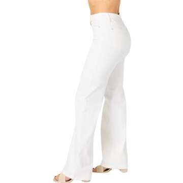 Judy Blue Women's High-Rise Braided Waistband White Wide Leg Jeans 88781 (White, 11)