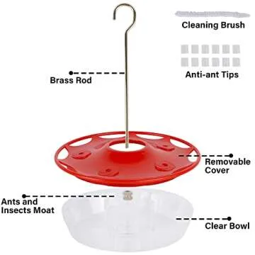 The product also boasts a clever hanging rod opening that allows for effortless placement on tree branches or garden hooks, ensuring that your feeder is securely positioned for optimal visibility. Plus, the detachable cover makes cleaning and refilling a breeze, helping you maintain a hygienic feeding environment for your feathered friends. To top it off, each purchase comes with 12 additional tips and a handy cleaning brush, providing you with everything you need to ensure your feeder is in perfect working condition all season long.