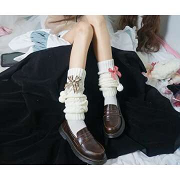 JUENAWMIU Cute Bunny Ears Furry Leg Warmers Fur Ball Bow Leg Warmers