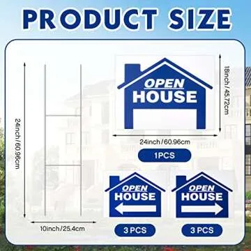 Show moreTransform your open house into a beacon for potential buyers with the Juexica 7 Pack Open House Sign Directional Set. Every package comes with 7 large open house signs and 7 robust H-shaped wire stakes, providing you with all the necessary tools to capture attention effectively. Each sign measures an impressive 24 x 18 inches, ensuring a perfect visibility range from the road. Paired with 9 x 24 inch stakes, these signs are not only easy to set up but also durable enough to withstand various weather conditions.