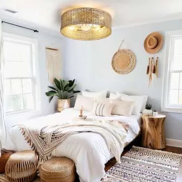 Jughtbo Boho Caged Ceiling Fan with Light, 20.28 Inch Rattan Ceiling Fans with Lights and Remote Control Flush Mount Low Profile 6 Speeds Fandelier for Bedroom, Living Room,Dining Room.Yoga Room