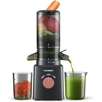 Show moreIntroducing the TUUMIIST Cold Press Juicer, your ultimate kitchen companion for crafting fresh, nutrient-packed juices without the hassle. This state-of-the-art juicer boasts an impressive 4.25-inch extra-large feed chute, designed for effortlessly inserting whole fruits and vegetables. Say goodbye to tedious chopping and prep work, as this convenient feature saves you invaluable time in the kitchen. With a generous 27oz capacity, you can easily whip up large batches of juice, making it perfect for family gatherings or hosting friends.