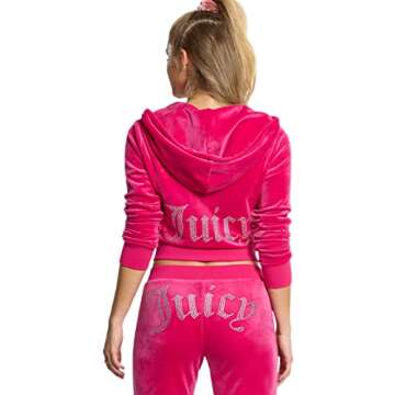 The Juicy Couture Bling Track Jacket comes in sizes XS to XXL, ensuring a great fit for various body types.