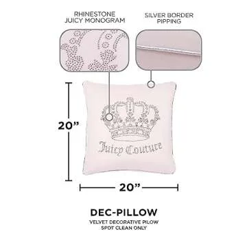 Juicy Couture - Decorative Accent Pillow, Velvet Rhinestone Crown, Premium Reversible Throw Pillow, Living Room and Bedroom Décor, Measures 20" x 20", Pink Blush