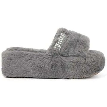 Juicy Couture Women's Faux Fur Platform Slippers – Fluffy Cozy Indoor Outdoor Slip-On House Shoes, World - Grey-9