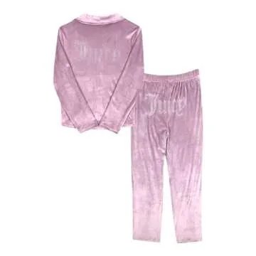Juicy Couture Women’s Velvet Fleece Button Down Shirt and Pants Pajama Set (US, Alpha, Large, Regular, Regular, Mauve Muse Button Down)