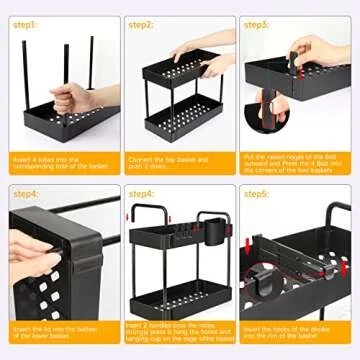JUJOJB 3 Pack Under Sink Organizers And Storage With Dividers,2-Tier Bathroom Organizers and Storage,Kitchen Organization,Cabinet Organizer With Hooks,Hanging Cup,Dividers,Handles,