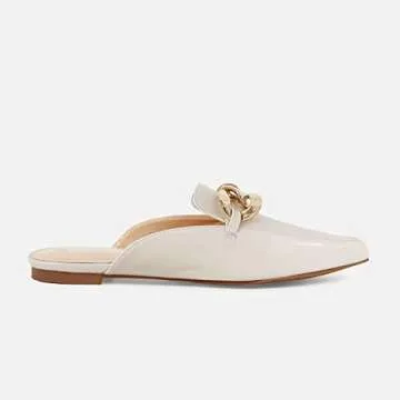 Juliet Holy Womens Mules Flats Pointed Toe Backless Loafers Slip on Metal Chain Slides Cream