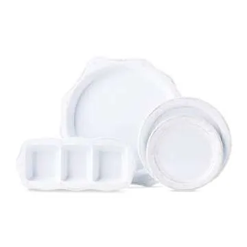 Juliska Berry & Thread Melamine 3-Section Server - Whitewash, Melamine Serving Tray - Unbreakable, White Melamine, Decorative Embossed Melamine Serving Tray with Handles