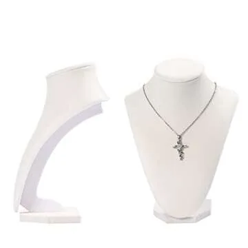 Julysky 3D Necklace Display Stand For Selling,Velvet Chain Jewelry Bust Holder Organizer (1, beige)