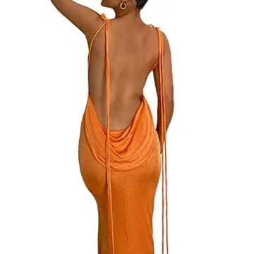 Show more This stunning women's maxi dress is crafted from a luxurious blend of 95% polyester and 5% spandex, ensuring a soft and comfortable fit that is perfect for those hot summer days. With its breathable material, this dress offers a skin-friendly feel, making it an essential addition to your wardrobe. The design boasts a sexy silhouette with features such as a backless style and floor-length draping, allowing you to showcase your figure beautifully.
