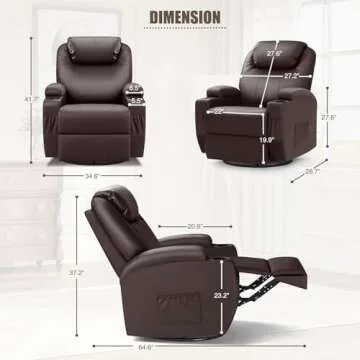 JUMMICO Recliner Chair, Rocking Massage Chairs, Home Reclining Sofa Chair, PU Leather, Ergonomic Living Room Chair with Cup Holders, Remote Control (Brown)