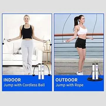 Jump Rope with Counter, Weighted Jump Ropes for Fitness for Women, Men, Kids. Cordless for Indoor and Outdoor, Smart Skipping Rope Have Calorie Counting and Adjustable Cable & Ropeless. Black