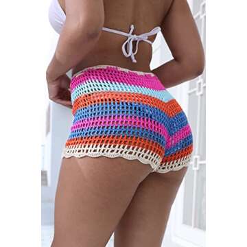 Jumppmile Women Crochet Shorts Hollow Out Beach Bathing Suit Bikini Swimsuit Cover Up Shorts with Drawstring Orange XL