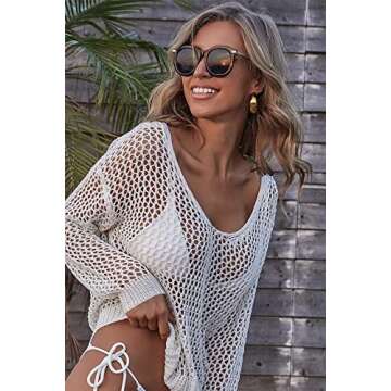 Jumppmile Women's Long Sleeve Crochet Cover Up for Swimwear