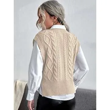 Show moreIntroducing the Jumppmile Women's V Neck Sweater Vest – a perfect blend of style, comfort, and versatility. Crafted from soft and breathable fabric, this sleeveless sweater vest feels luxurious against your skin while providing warmth during cooler months. The thoughtful V-neck design and stylish slit hem enhance your silhouette, making it a flattering choice for every body type. Featuring a unique twisted knitting pattern, this vest adds a fashionable touch that effortlessly elevates your attire. Embrace the relaxed yet academic style that this exquisite vest brings, making it a staple in your wardrobe!
