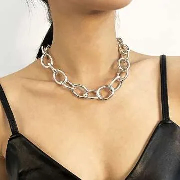 Jumwrit Punk Chain Choker Necklace Chunky Curb Link Chain Necklace Dainty Silver Necklace Accessories for Women