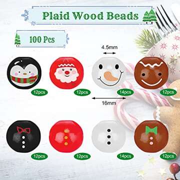 Junkin 100 Pieces Christmas Wooden Beads for Craft Decor and Jewelry Making