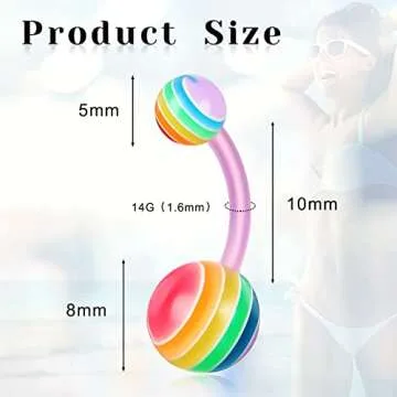 Junkin 200 Pieces Belly Button Rings Piercing Multipack Belly Ring Button Banana Barbells Colorful Body Navel Barbell Acrylic Balls Steel Belly Body Piercing Jewelry