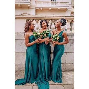 junytDing Women Satin Mermaid Bridesmaid Dresses Long One Shoulder Formal Wedding Guest Party Dresses LD0069 Hot Pink 12