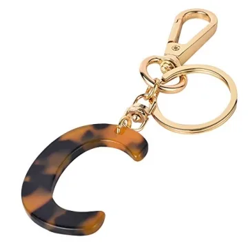 Junyuerly Letter C Key Chains Accessories for Women and Girls, Gold Initial Key Ring Acetate Leopard Pendant for Car Keys