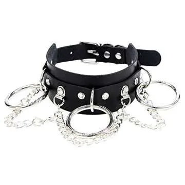 Jurxy Choker Necklace PU Leather Goth Choker Collar with O Shape Punk Rock Collar Adjustable Size –Black