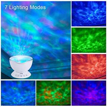 Jusale Ocean Wave Projector Remote Control Night Light with Speaker 7 Modes Undersea LED Lamp for Kids Adults
