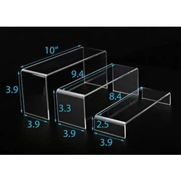 Show more Introducing the perfect solution for all your display needs – a stunning set of acrylic display risers that epitomize elegance and functionality! Crafted from food-grade durable acrylic, each riser is not only clear and polished but also designed to showcase a variety of items seamlessly. Whether you are displaying cupcakes at a party, arranging your collection of toys, or showing off exquisite jewelry, these risers promise to enhance the visual appeal of any item placed on them.