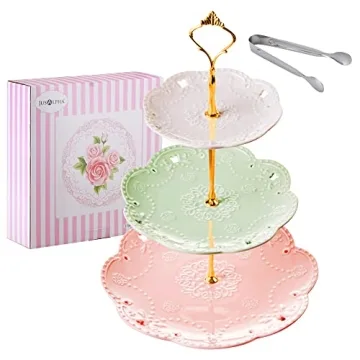 Jusalpha 3-Tier Porcelain Cake Stand-Dessert Stand-Cupcake Stand-Tea Party Serving Platter (3 Color-Gold)