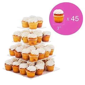 Show moreElevate your celebrations with the Jusalpha 4 Tier Square Wedding Acrylic Cupcake Tower Stand – a stunning centerpiece designed to showcase your cakes and desserts in style. Crafted from high-quality acrylic, this elegant stand harmoniously blends beauty and functionality, making it perfect for weddings, birthday parties, or any special event. Its exquisite square design offers ample space for displaying up to 2 dozen cupcakes, allowing you to impress your guests with delightful treats. Whether you're hosting an intimate gathering or a grand celebration, this gorgeous stand will enhance the aesthetic appeal of your dessert display.