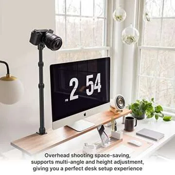 JUSMO Camera Desk Mount Stand w Ballhead, 16-34inch Adjustable Table Aluminum Light Stand w 1/4" Screw Tip, Desktop C-Clamp Mount Stand for DSLR Camera/Ring Light/Video Light/Webcam (LS10)