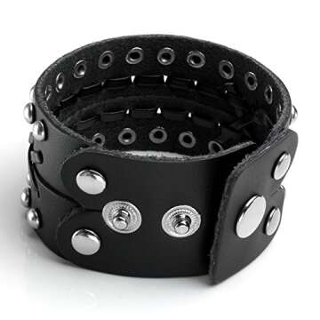Unlike many other leather bracelets that may use inferior materials, the JUSNOVA bracelet stands out with its high-quality PU leather and durable construction. Many similar products often lack the comfort and adjustable features seen here, making it difficult for a wide range of users to find a perfect fit. With its striking design and adjustable size, this bracelet offers a unique balance between punk aesthetics and comfort that few competitors can match.